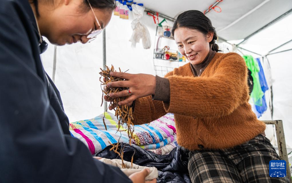 在那曲市索縣西昌鄉(xiāng),牧民將清理好的蟲(chóng)草裝袋收納(5月18日攝)。新華社記者 丁增尼達(dá) 攝