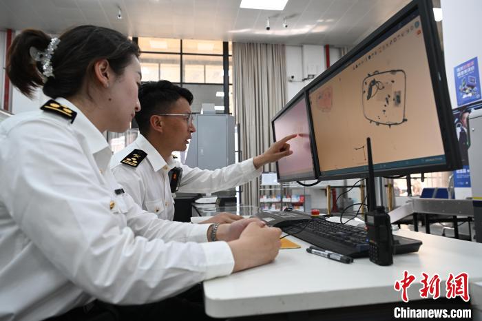 圖為西藏日喀則市吉隆縣吉隆口岸,海關(guān)查驗人員正對入境人員攜帶的物品開展細致查驗。貢嘎來松 攝