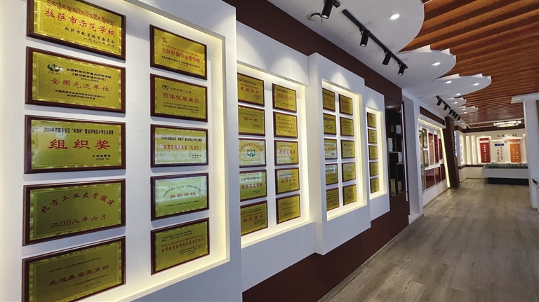 在校史館的圖片墻上,學(xué)校舉行“六一”文藝演出的照片吸引了記者的注意。從1985年羅布林卡黑白照片里孩子們歡快表演的身影,到上世紀(jì)90年代初宗角祿康公園彩色照片中孩子們慶?!傲弧眹H兒童節(jié)的文藝表演,再到1992年至2012年間,學(xué)校舉辦慶?!傲弧眹H兒童節(jié)文藝演出。20年間,學(xué)校進一步豐富特色教育,設(shè)有管樂隊、民樂特長班、手工特長班、美術(shù)特長班等,并組織管樂隊學(xué)生在布達拉宮廣場參加各類活動,為學(xué)生全面發(fā)展搭建起更廣闊的展示平臺。