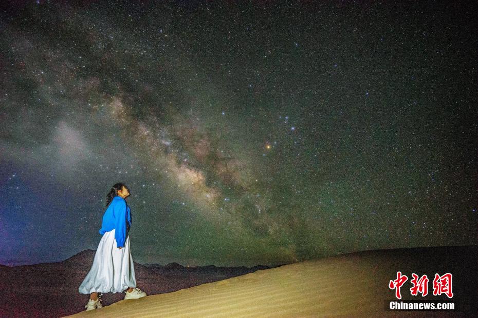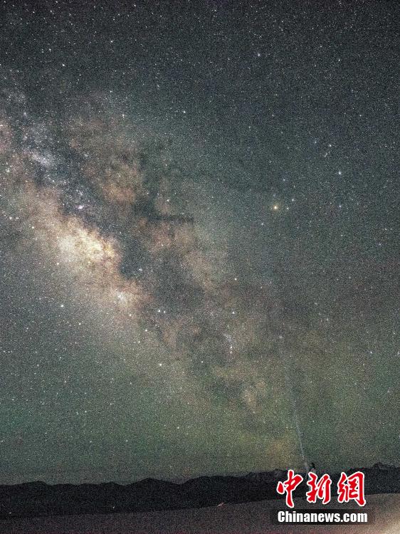 西藏阿里暗夜公園位于西藏自治區(qū)阿里地區(qū),海拔4200米,占地2500平方公里。這里集天文觀測、星空體驗與旅游服務(wù)于一體。近日,隨著當?shù)剡M入觀星季,攝影愛好者在這里拍攝捕捉到了壯麗的銀河景觀。圖為6月20日晚游客在西藏阿里暗夜公園,與銀河“合影”。曹枝清 攝
