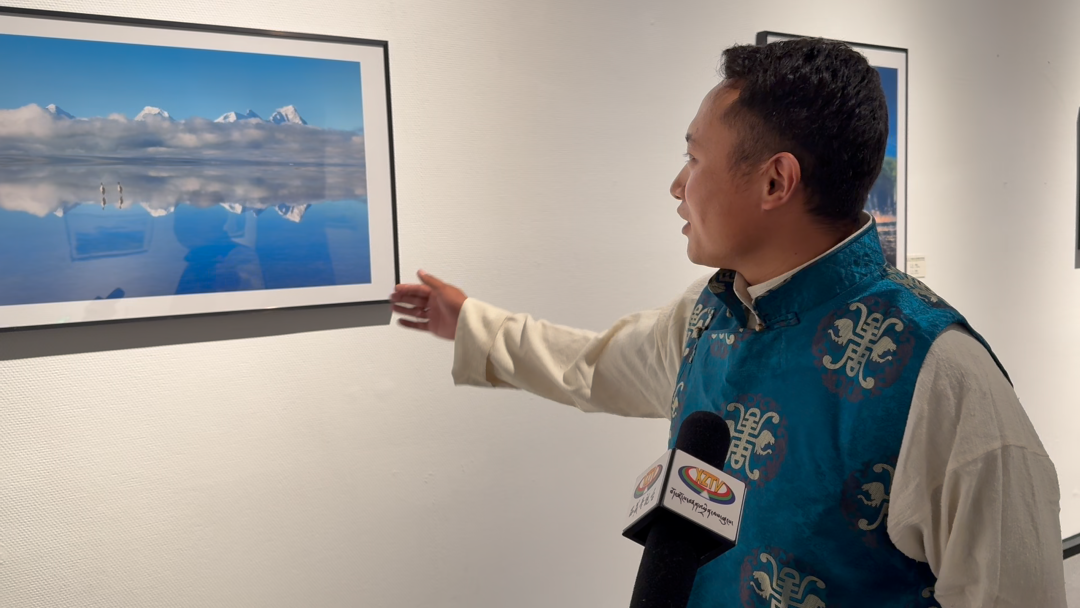 日喀則攝影協(xié)會(huì)會(huì)員、藝術(shù)家代表白瑪頓珠介紹:“這次我?guī)?lái)這幅作品是《卓木拉日雪山腳下的鶴影雙棲》,我的家鄉(xiāng)是卓拉日雪山腳下的一個(gè)鄉(xiāng)村,我采風(fēng)的時(shí)??吹饺伺c自然的和諧畫(huà)面。歡迎各位老師和朋友到日喀則做客拍照,用鏡頭書(shū)寫(xiě)更多日喀則的相關(guān)故事?!?/p>