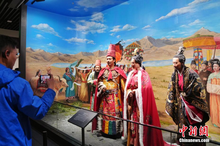 7月15日,在位于西藏拉薩的西藏博物館,文成公主進藏的《柏海迎親》塑像吸引觀眾。據(jù)了解,西藏博物館設有基本陳列《雪域長歌—西藏歷史文化展》《離太陽最近的人—西藏民俗文化展》,充分展示西藏地區(qū)歷史發(fā)展進程與文化面貌。中新社記者 張祥毅 攝