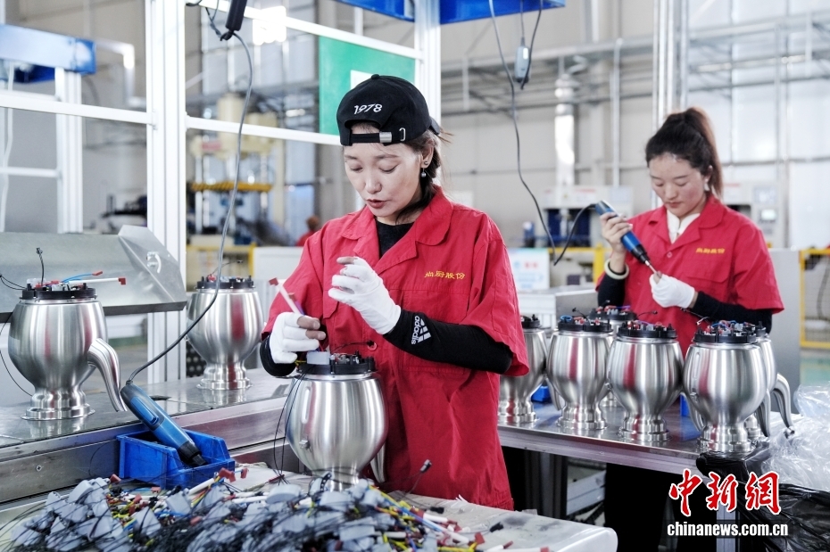 7月17日,在位于拉薩的西藏尚廚炊具科技有限公司,工人生產(chǎn)全自動(dòng)酥油茶壺。受西藏海拔高氣壓低的影響,長期以來西藏民眾面臨飲用水沸點(diǎn)低、食物難以煮熟、普通高壓鍋不適用高原環(huán)境等問題的困擾。2022年,該公司作為首家高原地區(qū)多功能烹飪炊具生產(chǎn)企業(yè)落地拉薩,研發(fā)、生產(chǎn)、銷售高原多功能炊具產(chǎn)品,促進(jìn)西藏經(jīng)濟(jì)發(fā)展的同時(shí)也緩解了西藏民眾的飲食困擾。中新社記者 張祥毅 攝