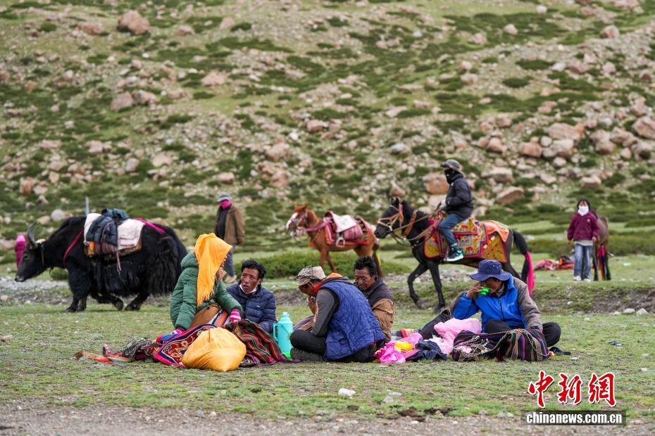 7月21日,在岡仁波齊山腳下,徒步旅行者做出發(fā)前的物資準(zhǔn)備工作。岡仁波齊位于西藏阿里地區(qū)普蘭縣境內(nèi),是岡底斯山的主峰,也是藏傳佛教的神山之一,每年吸引眾多信徒前往轉(zhuǎn)山,并衍生出徒步旅行的經(jīng)典路線。每年來(lái)自國(guó)內(nèi)外的徒步旅行者為當(dāng)?shù)貏?chuàng)造就業(yè)機(jī)會(huì)的同時(shí),也推動(dòng)了文旅產(chǎn)業(yè)的發(fā)展。中新社記者 張祥毅 攝