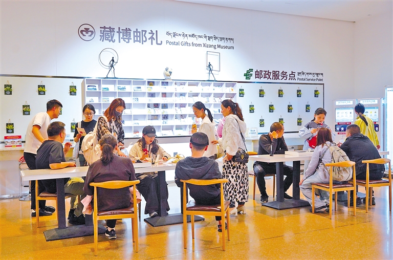 據(jù)西藏博物館文創(chuàng)中心相關(guān)負(fù)責(zé)人介紹,該服務(wù)點(diǎn)的創(chuàng)新優(yōu)勢(shì)體現(xiàn)在兩個(gè)維度:在服務(wù)流程上,游客選購(gòu)明信片、郵折等60余款主題文創(chuàng)產(chǎn)品后,可直接在館內(nèi)完成寄遞全流程,免去往返郵政網(wǎng)點(diǎn)的奔波;在服務(wù)深度上,現(xiàn)場(chǎng)配備專(zhuān)業(yè)人員提供從郵寄方式選擇、資費(fèi)計(jì)算到郵編查詢(xún)的“一站式”指導(dǎo),確保文化傳遞的便捷體驗(yàn)。數(shù)據(jù)顯示,自“一站式”寄遞服務(wù)開(kāi)通以來(lái),主題文創(chuàng)產(chǎn)品銷(xiāo)量顯著增長(zhǎng),這些承載著文物故事、高原風(fēng)情與人文溫度的創(chuàng)意載體,正逐步成為博物館“帶得走的文化符號(hào)”。