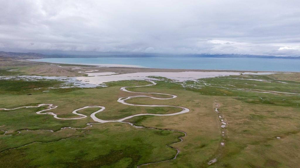 2025年7月22日拍攝的瑪旁雍錯濕地一景(無人機照片)。新華社記者 旦增尼瑪曲珠 攝