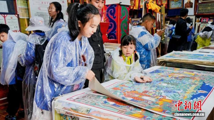 圖為“粵藏同行新時(shí)代·石榴籽一家親”活動(dòng)現(xiàn)場(chǎng)學(xué)生體驗(yàn)繪制民族團(tuán)結(jié)卷軸繪畫。林芝市文旅局供圖