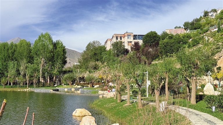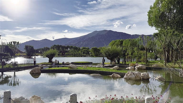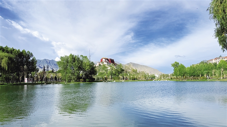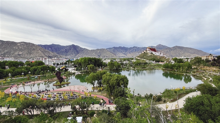 拉薩團(tuán)結(jié)公園坐落于布達(dá)拉宮西麓、藥王山腳下。昔日,這里房屋高低錯(cuò)雜、線纜交錯(cuò)密布、市場喧鬧擁擠、環(huán)境喧囂擾攘,不僅影響城市形象和生態(tài)環(huán)境,還影響出行游玩體驗(yàn)。如今,湖水如碧綢般清澈,岸邊綠樹成蔭,各類花卉競相綻放,昔日雜亂之地已蛻變?yōu)轸浯涿髦?,人文古跡與自然景致相映成趣,共同繪就出“百澤繞城·水城相依”的生態(tài)文明畫卷。