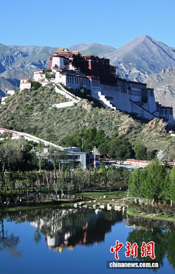 圖為拉薩團結公園水系倒映布達拉宮。貢嘎來松 攝