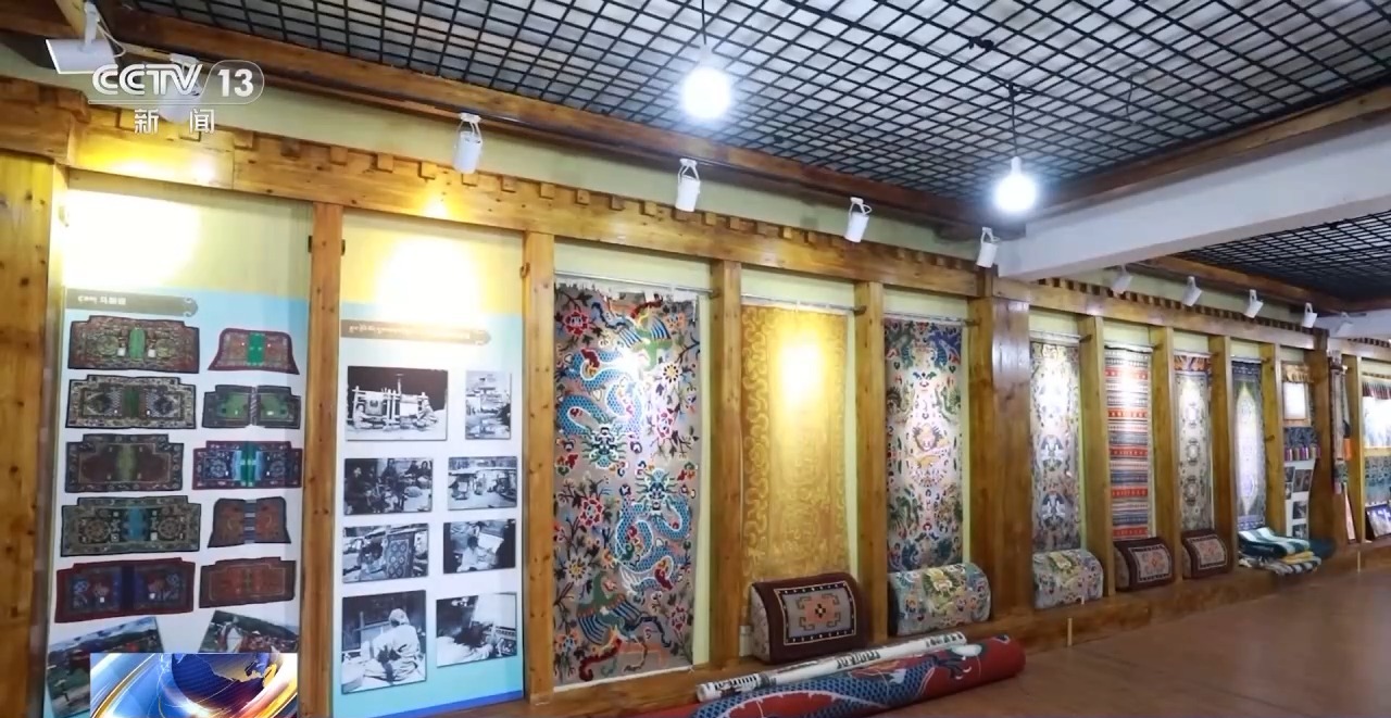 總臺(tái)央視記者 申楊:在這個(gè)藏毯陳列館,可以看到藏毯的前世今生。20世紀(jì)30年代到2010年時(shí)期藏毯的樣式,從顏色、造型、工藝上來講,變化并不大,真正發(fā)生變化是在2014年,藏毯的編織工藝有了新的突破。這幅布達(dá)拉宮立體編織圖,它是根據(jù)照片編織出來的,這種立體藏毯是怎么織出來的?