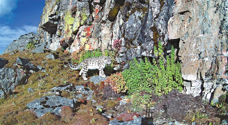 在乃朗谷拍攝到的雪豹。圖片由乃朗生態(tài)文化保護(hù)中心提供