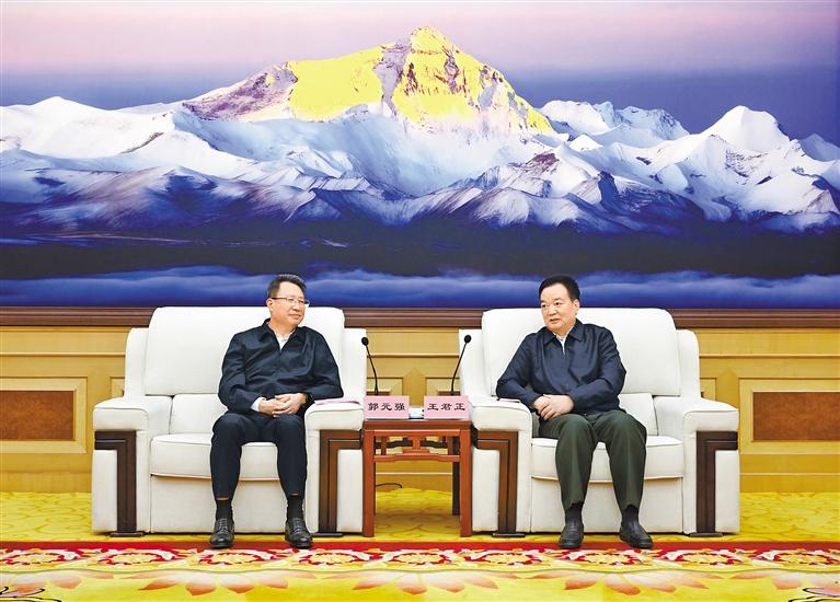 近日,自治區(qū)黨委書記王君正在拉薩與湖北省委常委、武漢市委書記郭元強(qiáng)一行座談。