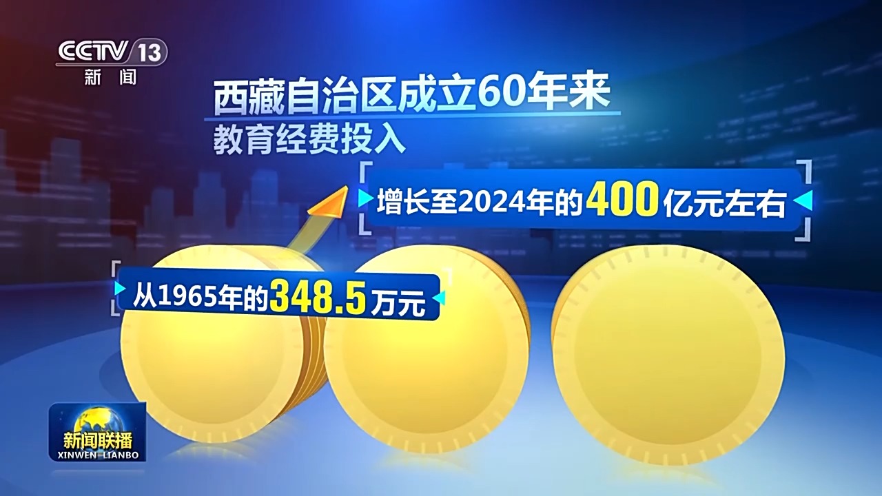 西藏自治區(qū)成立60年來,教育經(jīng)費(fèi)投入從1965年的348.5萬元增長至2024年的400億元左右。從2012年開始,西藏在全國率先建立從學(xué)前到高中的15年公費(fèi)教育體系。如今的西藏,已建成涵蓋學(xué)前教育、基礎(chǔ)教育、職業(yè)教育、高等教育等完整的現(xiàn)代教育體系。從文盲率高達(dá)95%以上,到如今的新增勞動(dòng)力平均受教育年限達(dá)13.1年,西藏教育實(shí)現(xiàn)了“歷史性跨越”。
