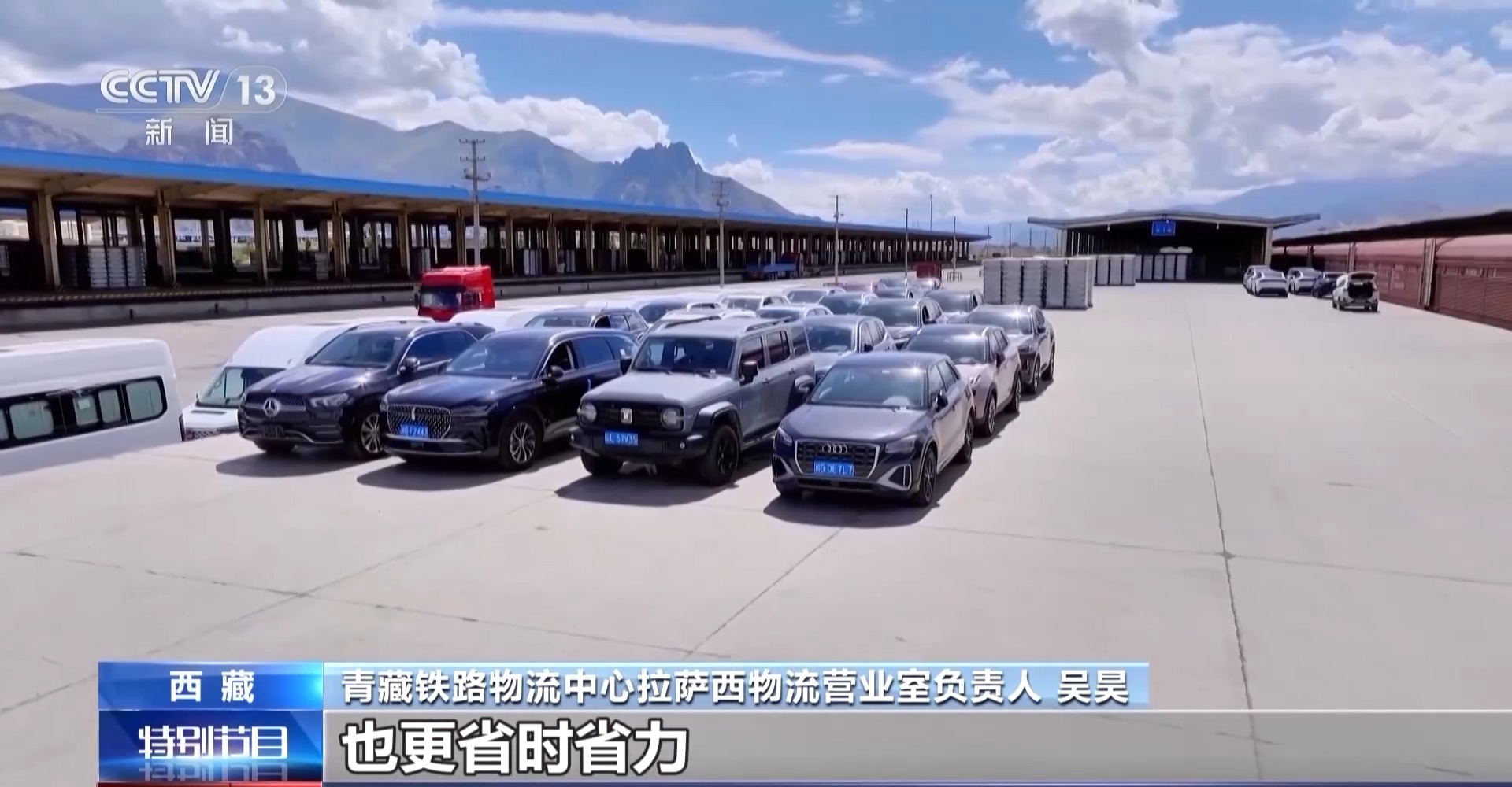 青藏鐵路物流中心拉薩西物流營業(yè)室負(fù)責(zé)人 吳昊:像這種車型就是我們鐵路為了小汽車運輸?shù)膶iT車型,裝小汽車能達(dá)到一百三四十輛。有的朋友喜歡把車輛拖到拉薩以后,開車去周邊玩,也更省時省力。