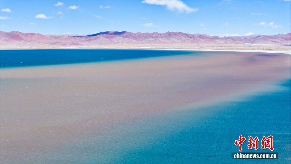 西藏自治區(qū)那曲市安多縣錯(cuò)那湖,湖水交匯處好似“鴛鴦火鍋”。(無(wú)人機(jī)照片)中新社記者 馬銘言 攝