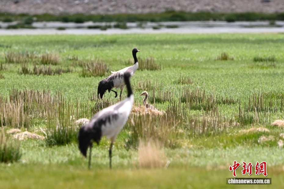 在海拔4700米的西藏自治區(qū)那曲市申扎縣濕地里,黑頸鶴一家在悠閑覓食。黑頸鶴是中國(guó)國(guó)家一級(jí)重點(diǎn)保護(hù)野生動(dòng)物,屬高原特有鶴類(lèi),主要棲息于海拔2500米至5000米的高原沼澤地、湖泊及河灘等濕地環(huán)境。每年四月起,成對(duì)的黑頸鶴陸續(xù)飛抵西藏自治區(qū)那曲市申扎縣,在此繁育后代。中新社記者 貢嘎來(lái)松 攝