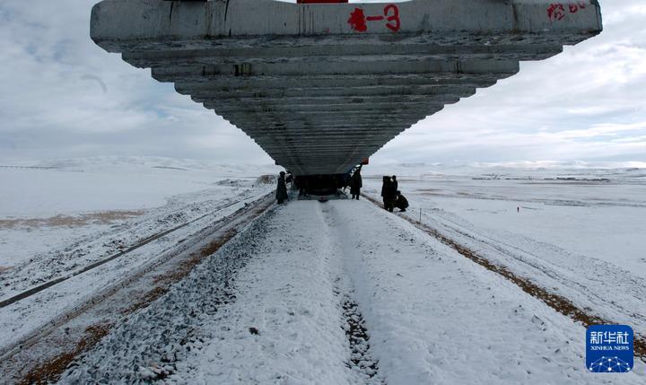 2004年10月9日,雪中的青藏鐵路施工現(xiàn)場(chǎng)。