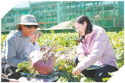 拉薩河畔,晨霧未散,曲水才納國家現(xiàn)代農(nóng)業(yè)示范區(qū)里一派豐收景象,一顆顆蕪菁大如籃球。中國科學院青藏高原研究所副研究員姜麗麗雙手托住其中一顆直徑近30厘米的蕪菁,激動地說:“沒想到能長這么大!”