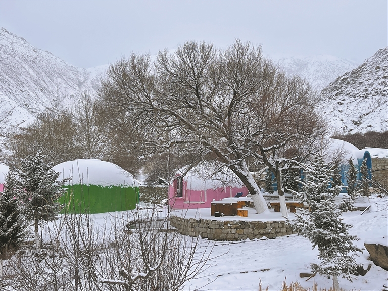 在如今已高樓林立的拉薩城,這片在廢墟上建起來的、堪稱世外桃源的寂靜山莊格外珍貴。更令人驚嘆的是,它的主人正是眼前這位高產(chǎn)的女作家?!按蟛糠稚钤谖鞑氐娜诵闹卸加幸粋€曠野存在?!庇疖窞榍f園賦予了另一個充滿詩意的名字——曠野牧蜂。而“牧蜂”,則是她人生實驗的最新溫暖篇章。為幫助患風(fēng)濕的讀者好友,她潛心鉆研蜂療,從文人變身為“蜂療師”。如今,16箱蜜蜂已成為莊園躍動的靈魂,“我?guī)退s天敵,它把蜜分我一半。”自產(chǎn)的藏蜜化作蜂蜜酸奶、蜂蜜黃瓜等創(chuàng)意甜品。鮮花叢中,五座“團團屋”靜立花海,其中一座湛藍(lán)如夢境——那是羽芊最癡迷的顏色,盛滿童真與浪漫,仿佛將畫布上的理想色彩搬進(jìn)了現(xiàn)實。她說:“我不過是在現(xiàn)實中裝點兒時夢想,也邀請他人來此綻放生命?!甭綀@中,常能看到她沉醉于一片花叢,凝神觀察光影變化,那是她在與自然進(jìn)行最親密的靈魂對話。