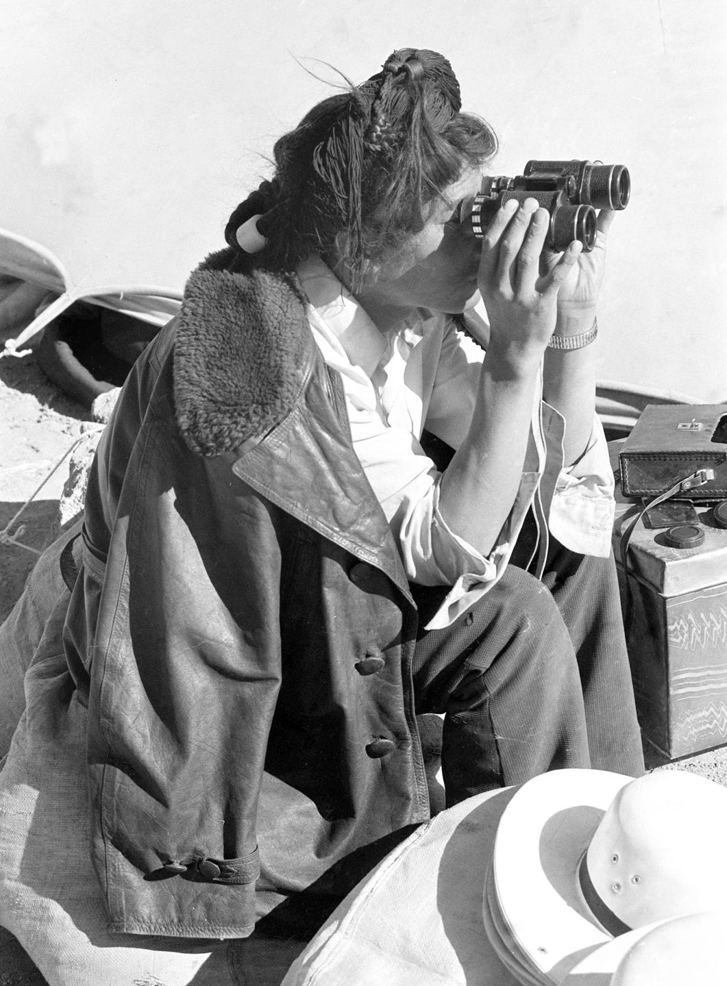藏北西部過去的“無人區(qū)”,平均海拔5000米,面積為20萬平方公里,因高寒缺氧,氣候惡劣,千百年來一直渺無人煙。1975年,西藏人民政府在這里先后成立了雙湖、文部兩個辦事處,第二年又有一批藏、漢族干部和幾千戶牧民趕著牲畜到這里安家落戶,沉睡千年的荒原從此揭開了開發(fā)建設(shè)的新篇章。過去跟著牛羊后面轉(zhuǎn)的牛羊倌,今天放牧用上了望遠鏡。這名小伙子一邊放牧,還不時坐下來看書、學(xué)習(xí)、聽錄音,通過望遠鏡瞭望羊群。 (1987年9月16日發(fā))