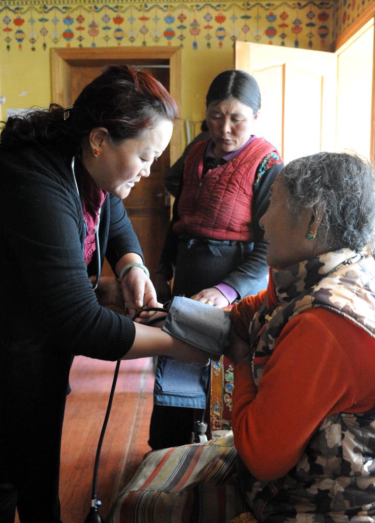這是雙湖縣醫(yī)生在嘎措鄉(xiāng)為牧民群眾量血壓、診斷疾病(2013年7月27日攝)。