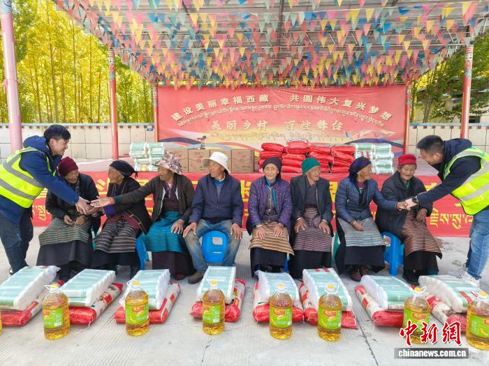 圖為西藏山南瓊結(jié)風(fēng)電項(xiàng)目赴仲堆村慰問(wèn)孤寡老人。中建二局 供圖