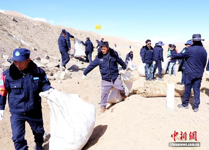 據(jù)悉,此次專項行動聚焦 G216國道改則段沿線生態(tài)保護痛點,以“清除白色垃圾、整治衛(wèi)生死角”為核心目標(biāo)?;顒蝇F(xiàn)場,50余名管護人員手持鐵鍬、掃把,提著垃圾袋,在國道沿線細致排查。面對高原紫外線強、氧氣稀薄、風(fēng)沙大等復(fù)雜環(huán)境,他們絲毫沒有退縮,彎腰撿拾沙土里、石縫間的塑料瓶、包裝袋等隱蔽垃圾,用“不怕苦、不怕累”的羌塘管護精神,織就高原國道生態(tài)“防護網(wǎng)”。