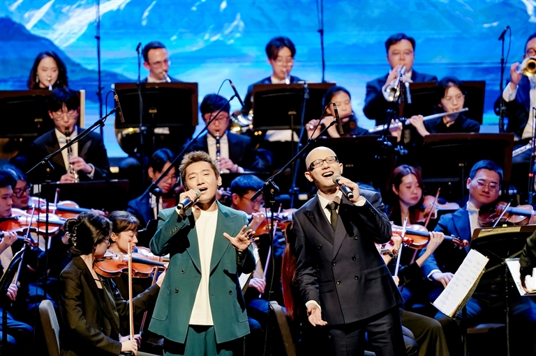 藝術(shù)形式的創(chuàng)新融合是本次音樂(lè)會(huì)的一大亮點(diǎn)。二重唱《茉莉與格?!穬?yōu)美詮釋了民族文化的交流共生;器樂(lè)演奏《“飛弦踏春”與“賽馬”》則讓著名二胡演奏家陳軍的激昂琴聲與扎念琴演奏員措姆的熱情彈奏展開(kāi)對(duì)話,碰撞出令人振奮的藝術(shù)火花。從展現(xiàn)拉薩當(dāng)代生活的電視劇插曲《藍(lán)天上的云》,到描繪鄉(xiāng)村振興新貌的《童話里的格林村》,再到融合原生態(tài)山歌與專業(yè)唱法、曾為中央代表團(tuán)獻(xiàn)唱的《珠穆朗瑪》,一系列新創(chuàng)作品生動(dòng)展現(xiàn)了傳統(tǒng)與現(xiàn)代交織、充滿活力的社會(huì)主義新西藏。