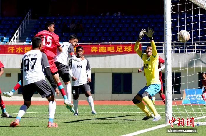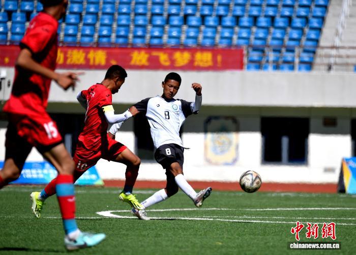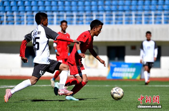 10月21日,2025年第四屆中國青少年足球聯(lián)賽西藏賽區(qū)男子U17(校園高中)組山南代表隊(白色球衣)與昌都代表隊(紅色球衣)比賽中。2025年第四屆中國青少年足球聯(lián)賽西藏賽區(qū)男子U13、U17(校園初、高中)組比賽將持續(xù)至10月22日,共有14支代表隊、300余名運動員參賽。各支代表隊以單循環(huán)賽制展開多輪激烈角逐。中新社記者 李林 攝
