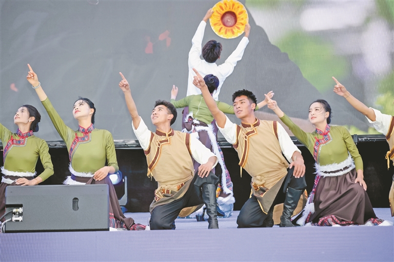 圖為松贊藝術(shù)團(tuán)帶來的舞蹈節(jié)目《向陽花開》。