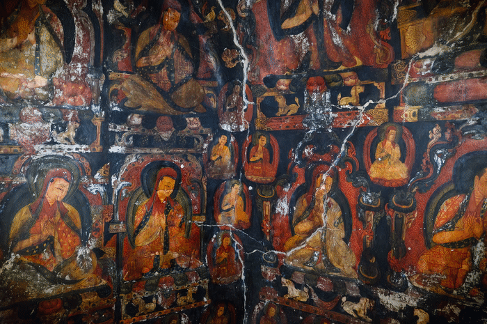 在仁增旺扎眼里,壁畫不是顏料涂上去的圖案,是先民留下的語言,是曾經(jīng)和他生活在同一片土地的人,如何理解生命、秩序、宇宙。