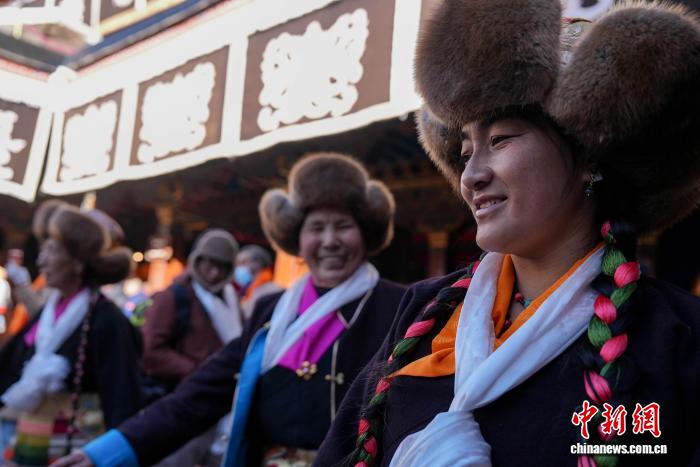 圖為白拉姆節(jié)臨近之際,信眾在大昭寺內(nèi)敬獻(xiàn)供品后載歌載舞的場(chǎng)景。貢確 攝