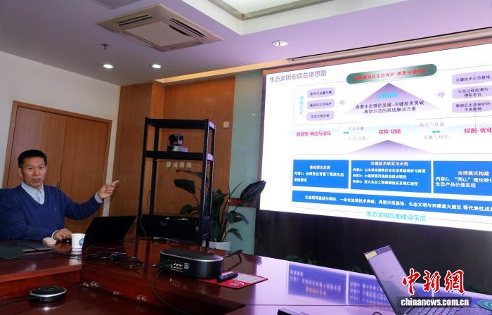梁爾源研究員介紹青藏高原植樹(shù)造林相關(guān)研究整體進(jìn)展情況。中新網(wǎng)記者 孫自法 攝
