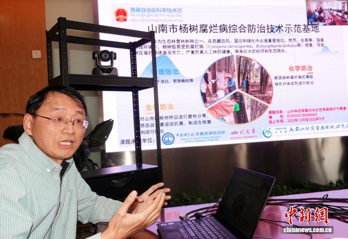 張更新研究員介紹青藏高原楊樹(shù)病害防治研究進(jìn)展。中新網(wǎng)記者 孫自法 攝