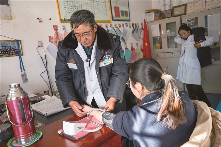 他早已習(xí)慣讓手機保持開機狀態(tài),清晨急診、深夜出診皆是尋常。“村民托付于我,豈能令其久候?!边@樸實話語常伴其行。面對行動不便的老人和幼兒,他定期叩門量血壓、做檢查,將健康守護送到家中。每次獲得表彰時他總是謙遜地說:“這是對鄉(xiāng)醫(yī)群體的肯定,我定不負(fù)這份托付?!?/p>