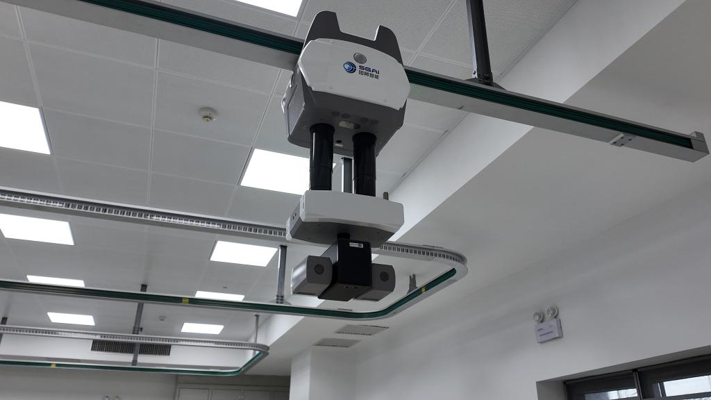 這是卡麥換流站控制保護(hù)設(shè)備室內(nèi)配備的軌道巡檢機(jī)器人。新華社記者 潘一景 攝