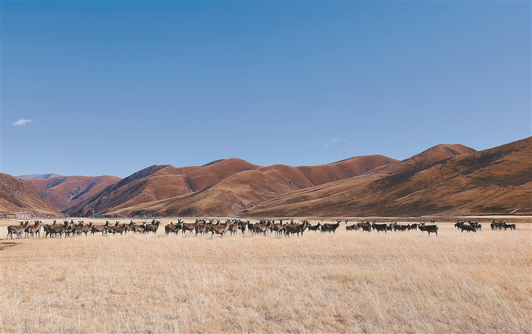 昌都市類烏齊縣保護區(qū)內的馬鹿。記者 白瑪澤旺 攝