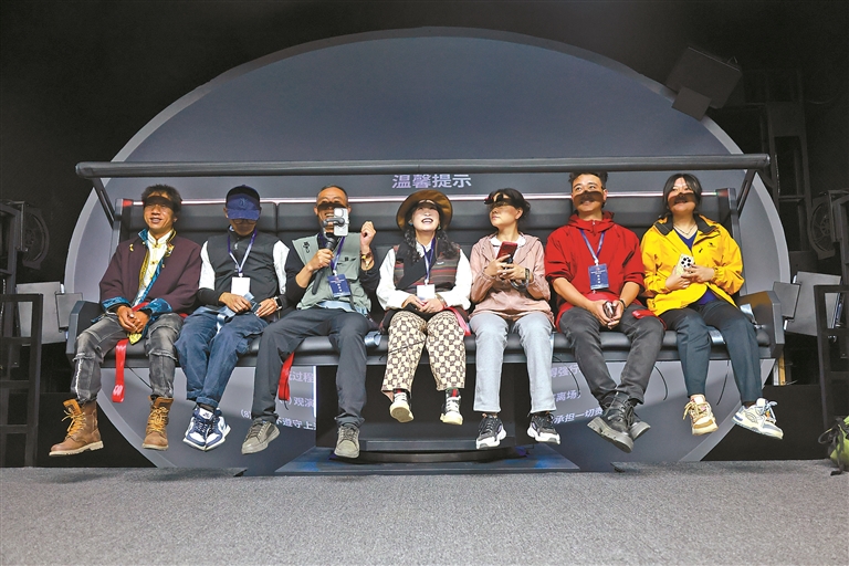 圖為游客在8D飛行影院體驗并了解瓊結縣的歷史人文。