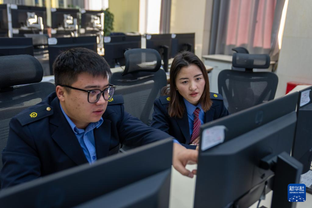 1月6日,拉薩基礎(chǔ)設(shè)施段安全生產(chǎn)指揮中心人員正在進(jìn)行視頻盯控、集中監(jiān)測(cè)。新華社記者 旦增尼瑪曲珠 攝