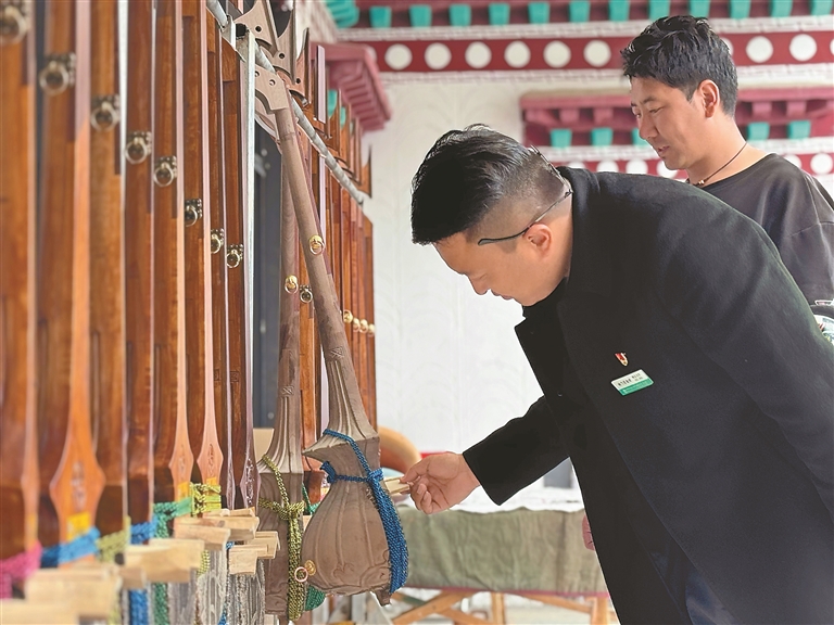 農(nóng)行西藏分行客戶經(jīng)理上門(mén)調(diào)研扎木念琴的制作銷售情況。