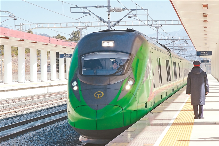 圖為C882班次動(dòng)車緩緩駛進(jìn)米林站。記者 謝筱純 攝