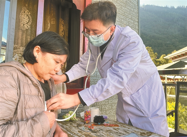 圖為林芝市墨脫縣格當(dāng)鄉(xiāng)衛(wèi)生院的醫(yī)生入戶為群眾開展診療服務(wù)。記者 王敏 通訊員 郎玲 攝