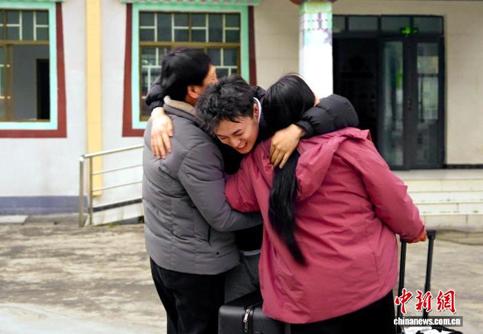 圖為何軍杰與從安徽合肥遠道而來的父母團圓。受訪者供圖
