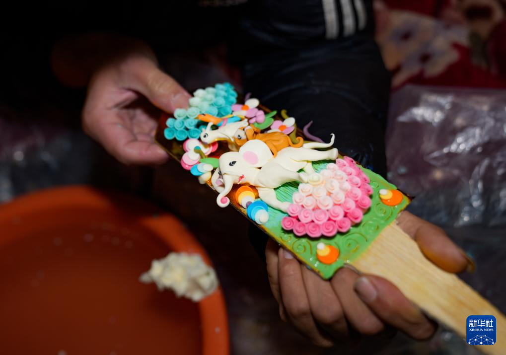 2月12日,在拉薩市林廓東路,手工藝人在制作酥油花。新華社記者 丁增尼達(dá) 攝