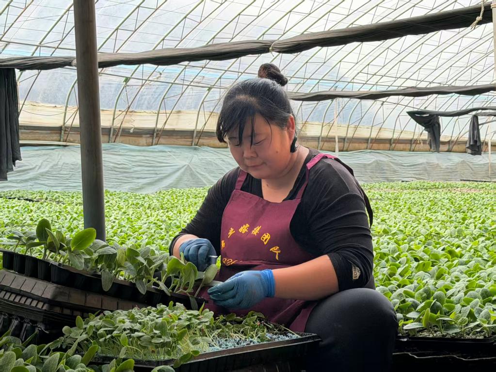初春,在山東省聊城市莘縣董杜莊鎮(zhèn)梁丕營村,41歲的馬燕正在育苗大棚里嫁接瓜苗。