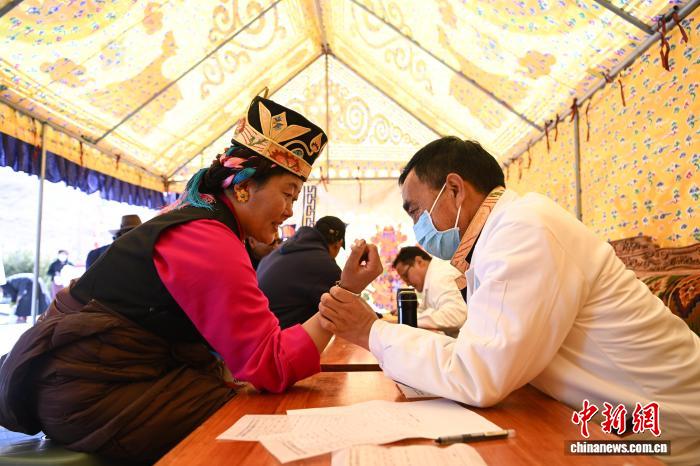 圖為達(dá)普天文觀測(cè)臺(tái)年度觀測(cè)活動(dòng)現(xiàn)場(chǎng),西藏自治區(qū)藏醫(yī)院的專家為村民免費(fèi)義診。貢嘎來(lái)松 攝