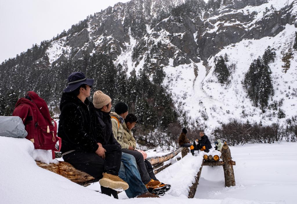 游客們一路走走停停,拍照、駐足、感嘆。因風(fēng)雪較大,到牧場的2公里路就走了整整一小時(shí)。但沒有人放棄,也沒有人覺得遺憾——白普隆溝的美,不在于抵達(dá)終點(diǎn),而在于每一步都有驚喜。