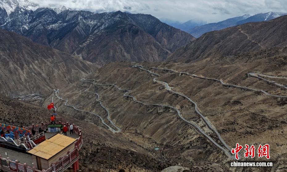 3月25日,川藏線“天路72拐”觀景臺(tái)拍攝的川藏公路。位于西藏昌都市川藏公路線上的“天路72拐”,全長(zhǎng)僅30多公里,高差卻達(dá)1800余米。因坡陡彎急、地勢(shì)險(xiǎn)峻成為川藏公路上極具視覺沖擊力的打卡點(diǎn),吸引過往游客在觀景臺(tái)駐足打卡拍照。(無人機(jī)照片)中新社記者 李林 攝