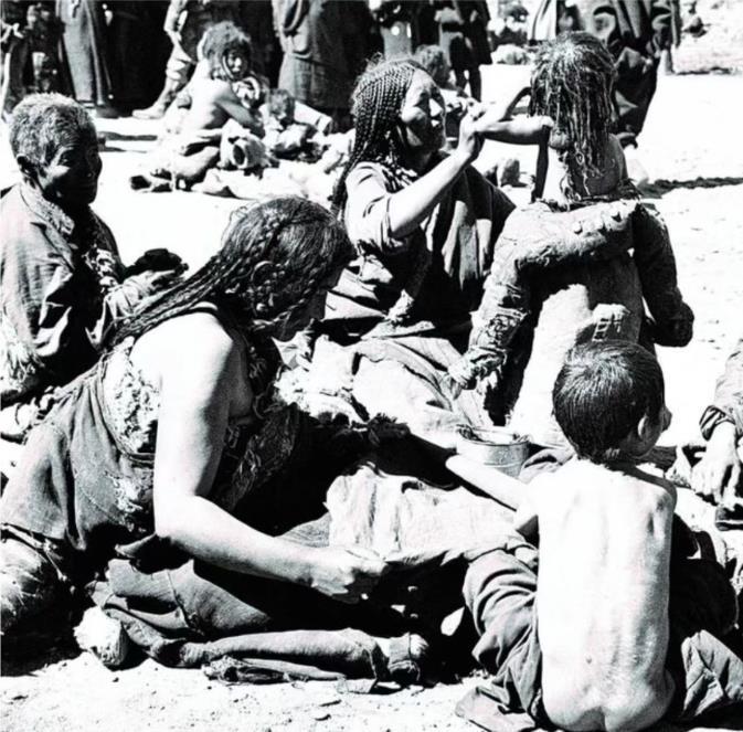 舊西藏的婦女和兒童在街上乞討。新華社發(fā)