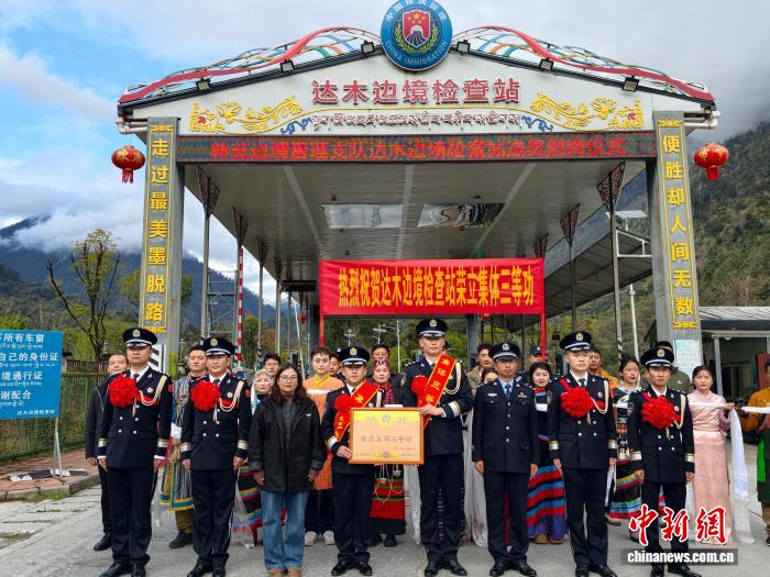 圖為林芝邊境管理支隊(duì)送獎(jiǎng)小組為達(dá)木邊境檢查站集體三等功頒發(fā)證書。林芝邊境管理支隊(duì)供圖